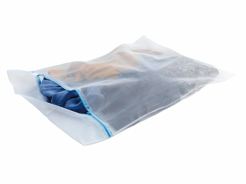 Stauraum bietet der Kleiderwäschebeutel in Größe L. Er ist aus weißem Nylon gefertigt, hat einen Reißverschluss und misst 30×50 cm. Ohne Dekomaterial.