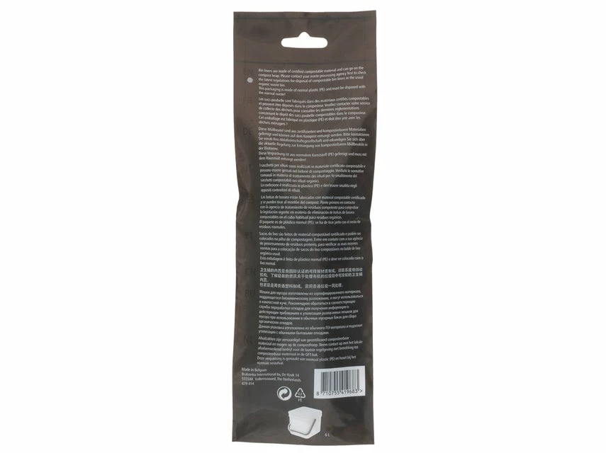 Bitte beachten Sie: Zur optimalen Aufbewahrung der kompostierbaren Müllbeutel besteht die Verpackung der Beutel aus normalem PE Kunststoff und muss über den regulären Restmüll entsorgt werden. Bitte kontaktieren Sie zunächst die zuständige Entsorgungsbehörde, um sich über die aktuellen Bedingungen zur Entsorgung von kompostierbaren Müllbeuteln zu informieren.