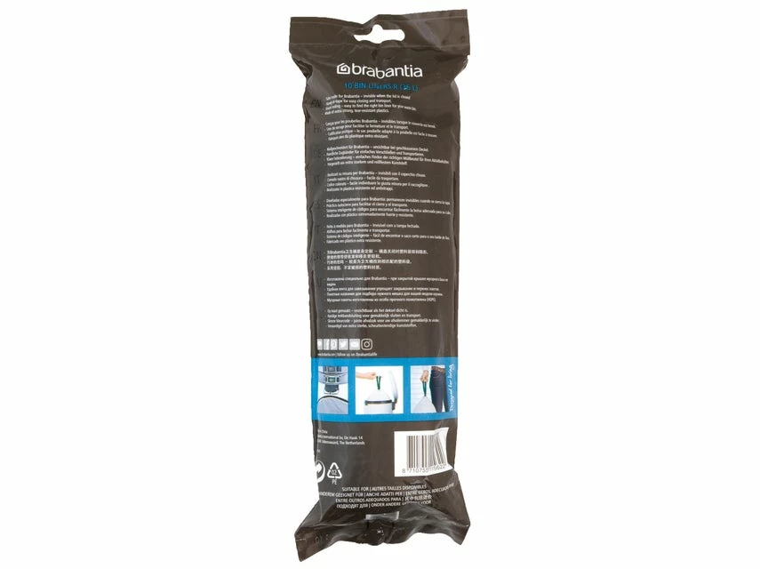 Der perfekte Sitz ist genau auf die Abfallbehälter von Brabantia zugeschnitten. Es entsteht kein unschönes Überstehen der Ränder, der Müllbeutel ist unsichtbar, wenn der Abfallbehälter geschlossen ist. Eine smarte Codierung am Abfallbehälterdeckel gibt einen Hinweis auf die Größe, so finden Sie leicht den richtigen Müllbeutel für Ihren Abfallbehälter. Ein bequemes Verschlussband führt zum einfachen Verschließen, Herausnehmen und Transportieren des Müllbeutels. Insgesamt 10 Müllbeutel pro Rolle.
