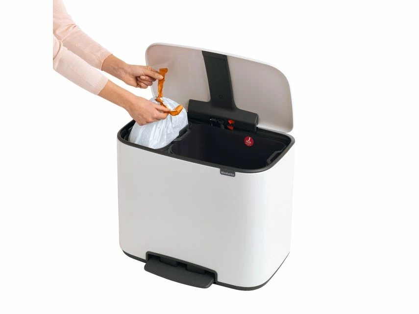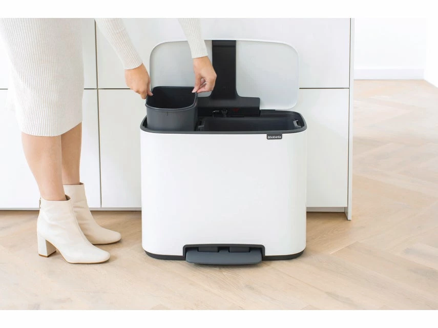 Sie sind auf der Suche nach einer schönen Lösung für die Abfalltrennung? Dieser Treteimer Bo kombiniert wunderschönes Design mit großer Kapazität. Er passt eng an die Wand und die rutschfeste Bodenunterseite schützt den Fußboden und sorgt für eine hohe Standfestigkeit. Dank der eingebauten Absenkautomatik schließt der Eimer äußerst leise und lässt sich wunderbar einfach bedienen. Gefertigt aus hochwertigen Materialien – 10 Jahre Garantie.
