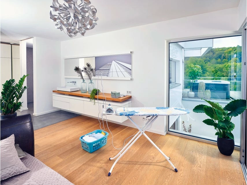 | Besonderheiten Bügelbrett | Bügeleisenablage Kabelhalter |