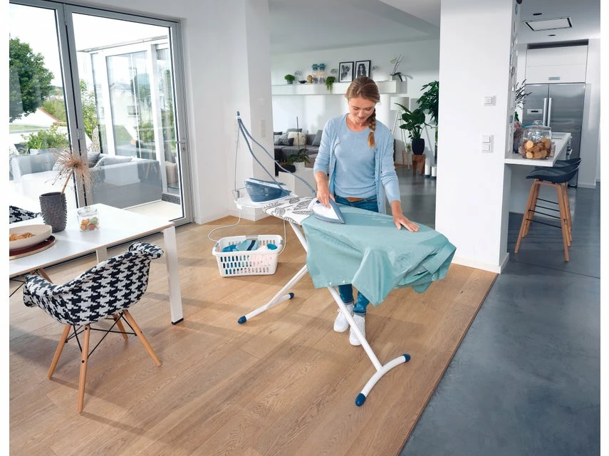Das ideale Bügelbrett für die Nutzung von Dampfstationen. Der Bezug aus reiner, perforierter Baumwolle sorgt für den optimalen Dampfdurchlass und die Ablage ist perfekt geeignet zum sicheren Abstellen der Dampfstation.