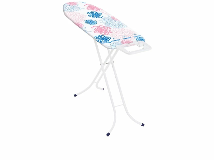 Die kompakte Bügelfläche ist aus Streckmetall gefertigt. Die feste Bügeleisenablage aus Metall sorgt für ein sicheres Abstellen des Bügeleisens. Höhenverstellbar für rückenschonendes Bügeln in optimaler Arbeitshöhe. Transportsicherung für leichte Transport und platzsparendes Verstauen. Mit verbessertem Rostschutz.