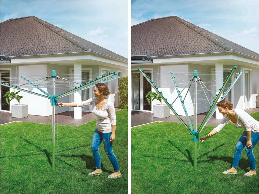Die Wäschespinne Linomatic 400 Easy von Leifheit bietet Platz für etwa 4 Waschmaschinenladungen an Wäsche. Mit dem Easy-Lift-System ist die Wäschespinne schnell einsatzbereit und verfügt über eine Leinenlänge von 40 m.