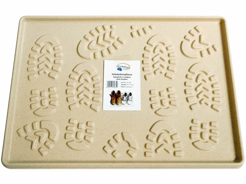 Unreine Schuhe und wohin damit? Diese Schuhabtropftasse aus Kunststoff mit elegantem Schuhabdruck Muster ist der ideale Platz dafür.