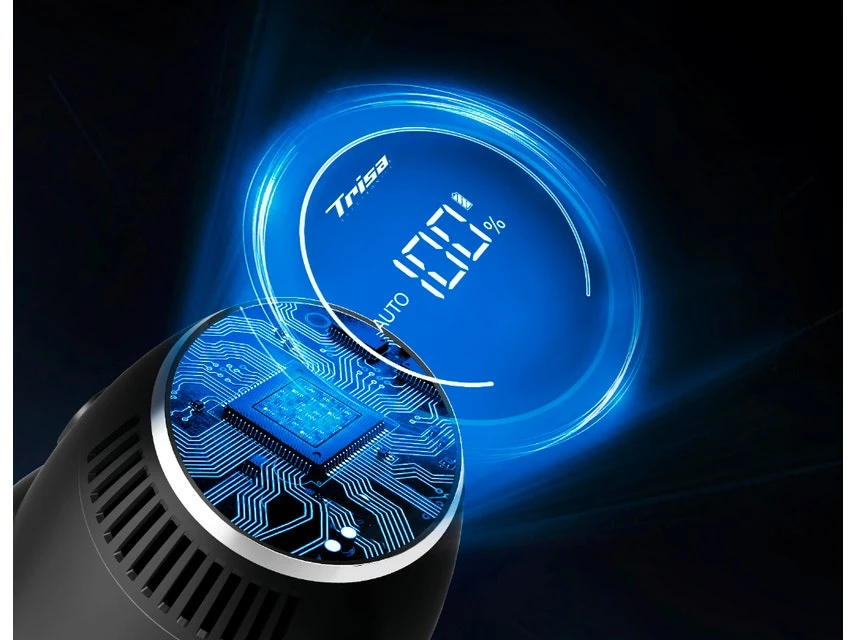 LED-Anzeige mit aktuellem Ladezustand und 4 Leistungsmodi (ECO, Middle, Max, Auto)